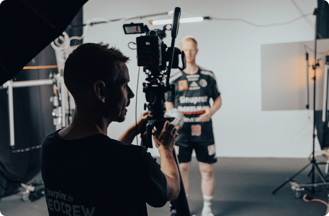 Vor dem Anpfiff wird’s spektakulär: Für die emotionalen Eindreher produzieren wir aufwendig inszenierte Videos in unserem Studio – mit den Spielern in Hauptrolle und echter Kinostimmung auf der Leinwand der Arena. In Kombination mit Licht, Sound und der Einlaufshow entsteht ein Moment, der Fans abholt, das Team pusht und den HC Erlangen einzigartig inszeniert.